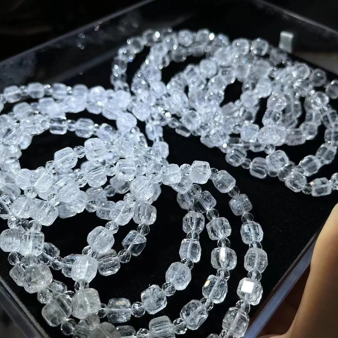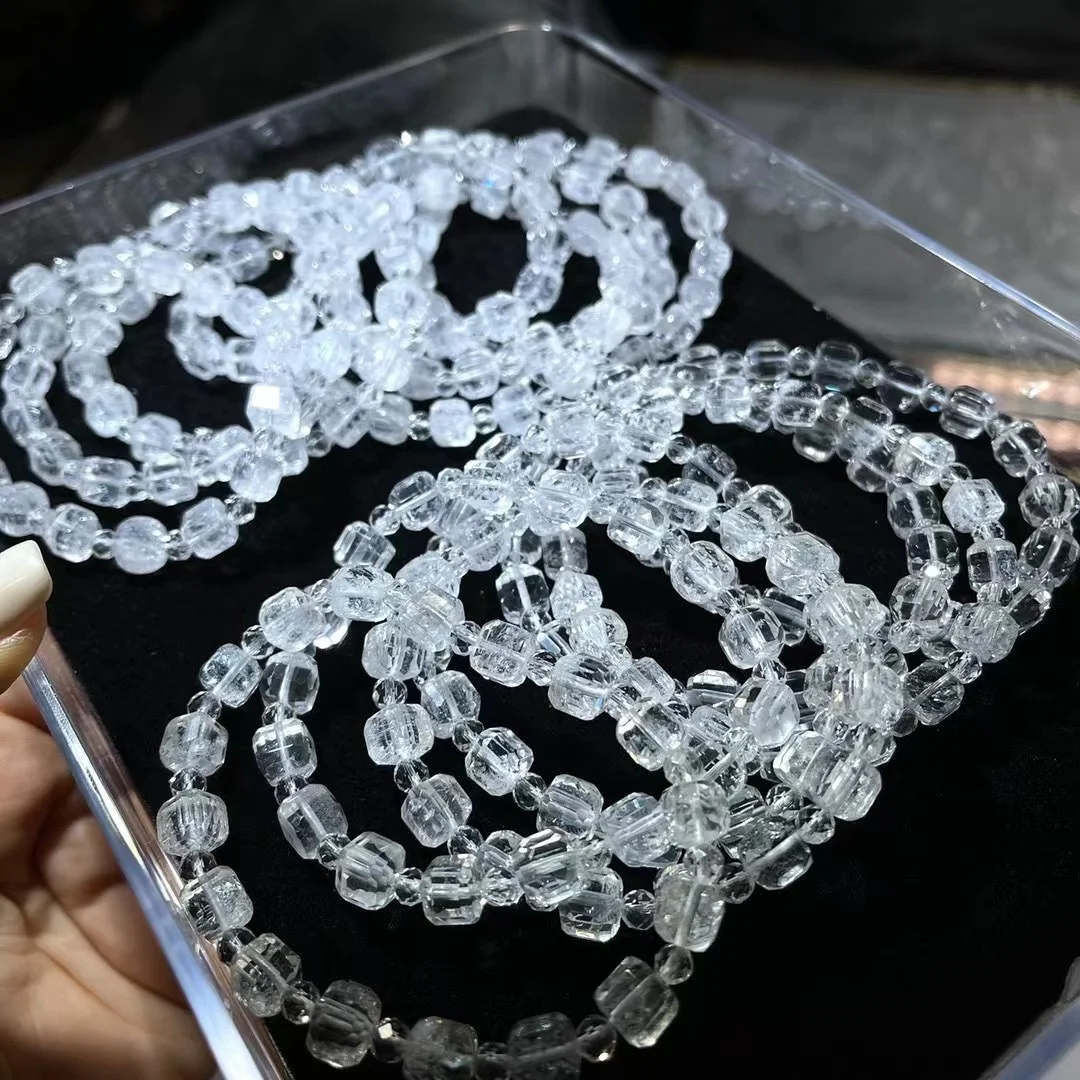 Experience the ethereal beauty of the natural faceted White Azez Crystal bracelet, crafted with precision and care. Featuring cube-cut, sugar-like beads with strong rainbow fluorescence, this bracelet radiates elegance and purity, making it a must-have for crystal enthusiasts and fashion lovers alike.